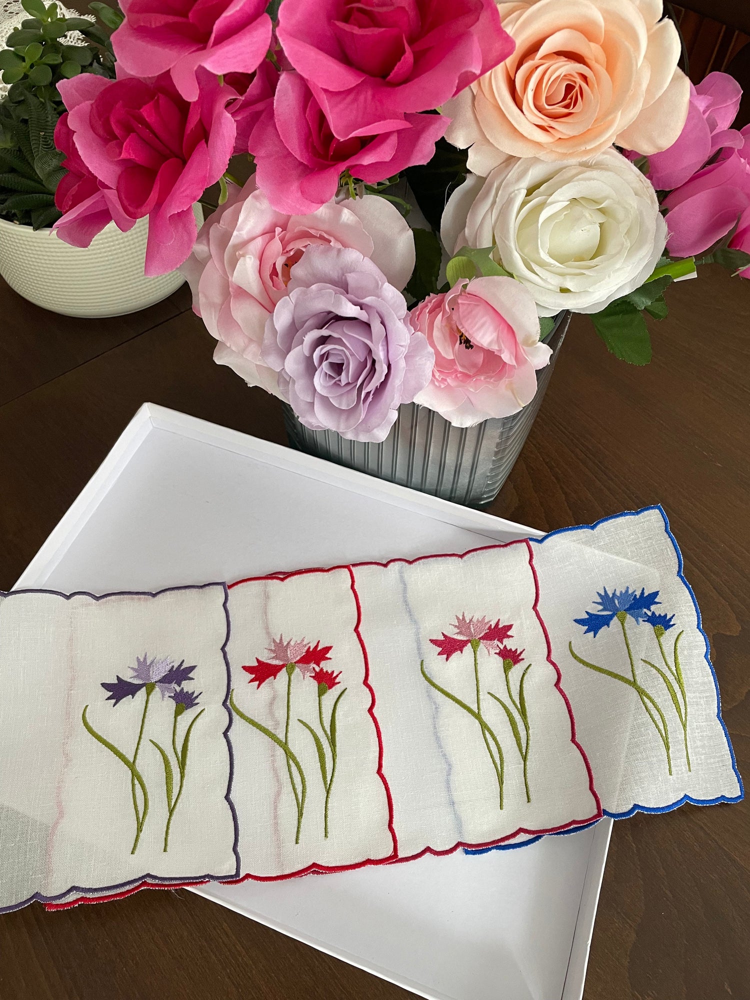 We prepare stylish embroidered dinner napkin sets in many different color tones...